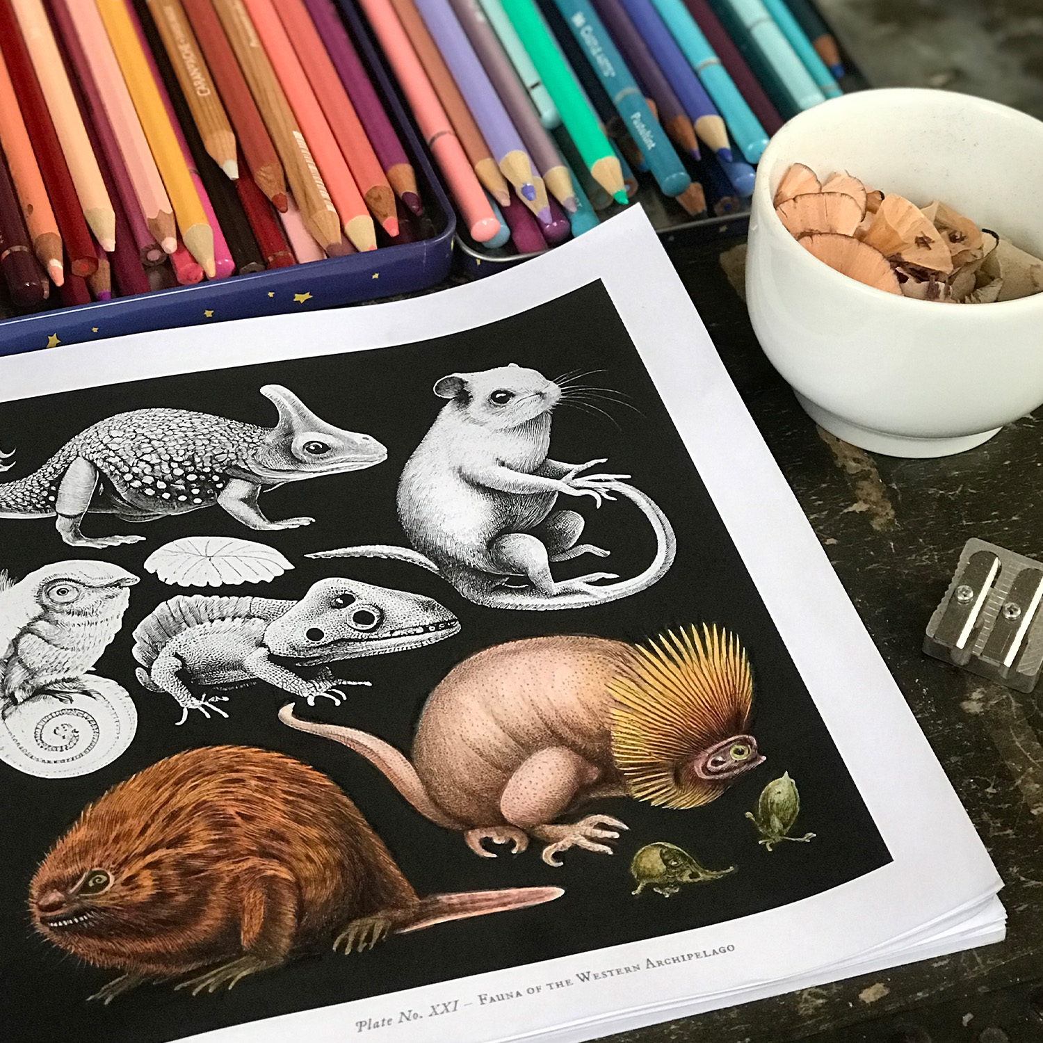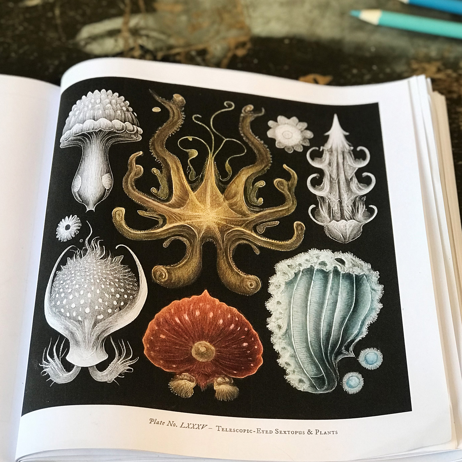 The seven volume set includes detailed vintage scientific illustrations in the style of 19th century naturalists, biologists and botanists. With each book boasting over 100 fantastic new species in 36 beautiful plates, your imagination can run wild as you fill these pages with your favourite colors.